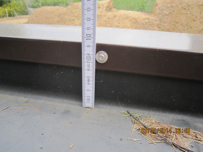 Weiterer Mangel: Die Schrauben durchdringen bereits in einer Höhe von 7,5 cm die Abdichtung.