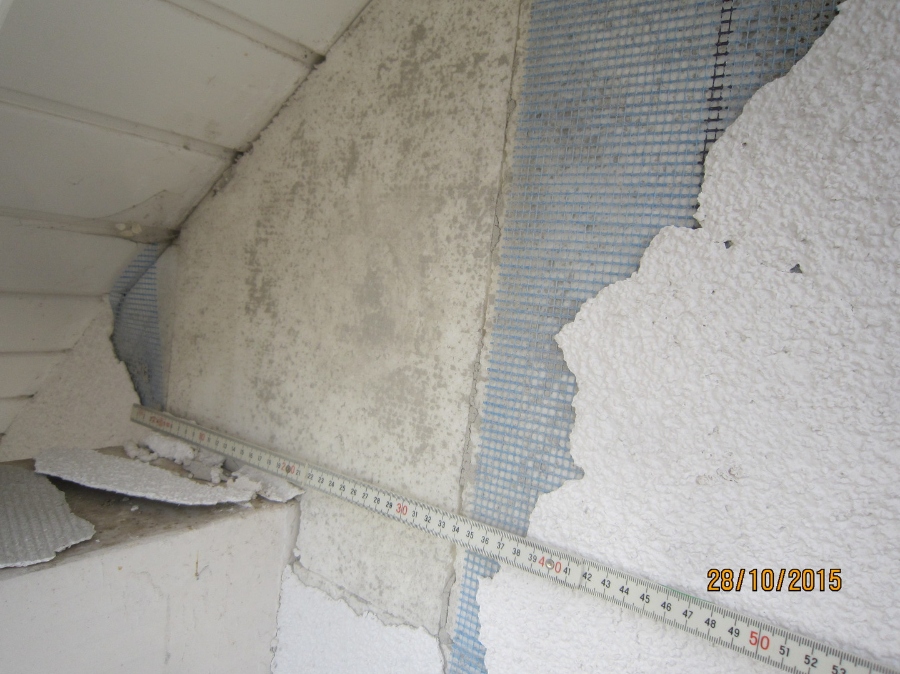 Auf einem vor ca. 4 Jahren erstellten Wärmedämmverbundsystem löst sich der Armierputz großflächig von den Dämmplatten ab.